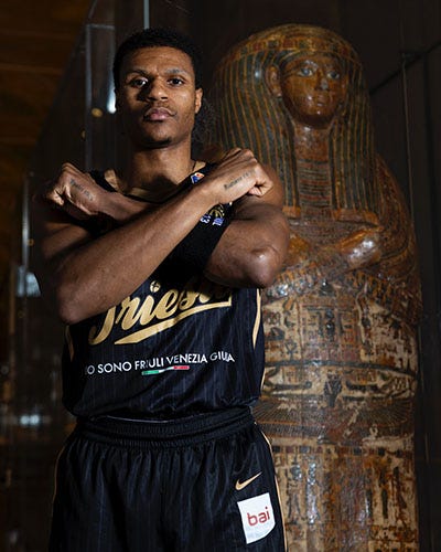 La Galleria dei Re, con le sue monumentali statue millenarie di faraoni e divinità, è uno dei luoghi più iconici e scenografici del Museo Egizio di Torino, polo culturale di attrazione mondiale con 1,2 milioni di visitatori nel 2025. Qui, in occasione della Final Eight, si è voluto celebrare il legame tra basket, storia e città, attraverso uno shooting fotografico che ha coinvolto un giocatore per ciascuna delle otto squadre partecipanti.